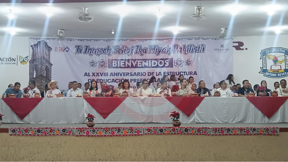 En el evento participaron las secciones 01, 02, 03, 05, 06,07, 08 y 019 que conforman la Educación indígena. En su mensaje el secretario general de la sección XV del SNTE, reconoció la labor de los trabajadores de la educación pertenecientes al nivel: “Honor a quien honor merece, a quienes iniciaron con los trabajos de educación indígena, hemos visto en la historia el gran proceso que ha vivido la educación indígena, que alegría me da ver los maestros que siguen protegiendo y motivando cada vez más la cultura, la lengua y la escritura, sé que son profesionales en el contexto educativo, es la parte de la estructura fundamental de la educación indígena, ustedes con su vocación y entrega fomentan la identidad de nuestras niñas y niños” destacó.