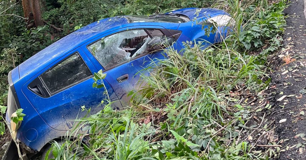 El percance ocurrió entre una camioneta Ford Platinum intentó rebasar y un vehículo compacto, lo que provocó que ambos salieran de la carretera y terminaran volcados.