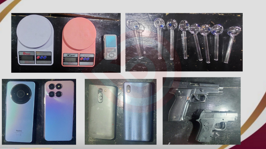 En el lugar se localizaron además tres básculas grameras, ocho pipas de cristal y diversas bolsas de sellado hermético utilizadas para la dosificación de droga, así como dos armas hechizas y equipos de telefonía presuntamente empleados para el contacto y la distribución de las sustancias.