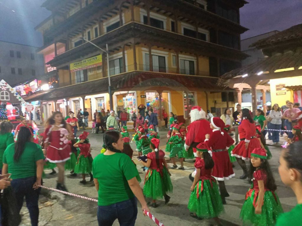 Huejutla de Reyes, Hgo. – Con motivo de las fiestas decembrinas, en la zona centro de la ciudad se llevó a cabo el tradicional desfile navideño organizado por el sector educativo, el cual llenó de color y alegría el primer cuadro de la ciudad.