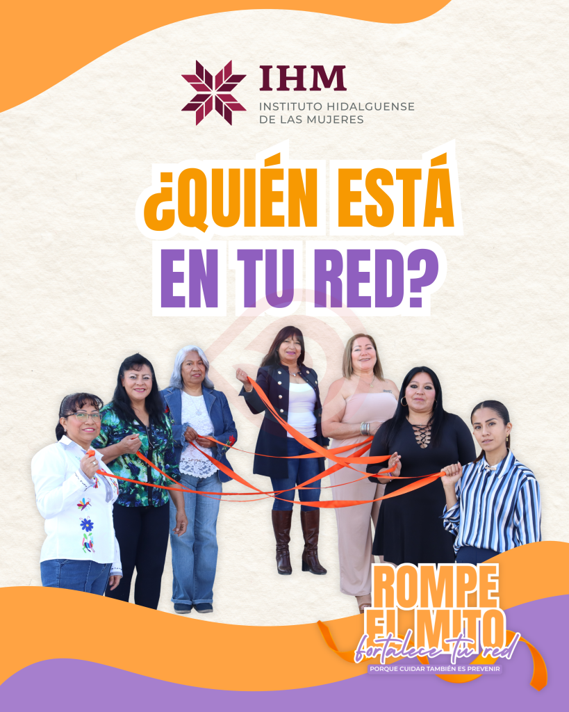 Pachuca de Soto, Hgo. – Con el lema “Porque prevenir también es cuidar”, el Instituto Hidalguense de las Mujeres (IHM) realizó la campaña de difusión “Rompe el mito, fortalece tu red”, con el objetivo de identificar las redes de apoyo en el ámbito familiar, social y comunitario, como una forma de enfrentar la violencia de género y desmantelar estereotipos, como la supuesta rivalidad femenina.