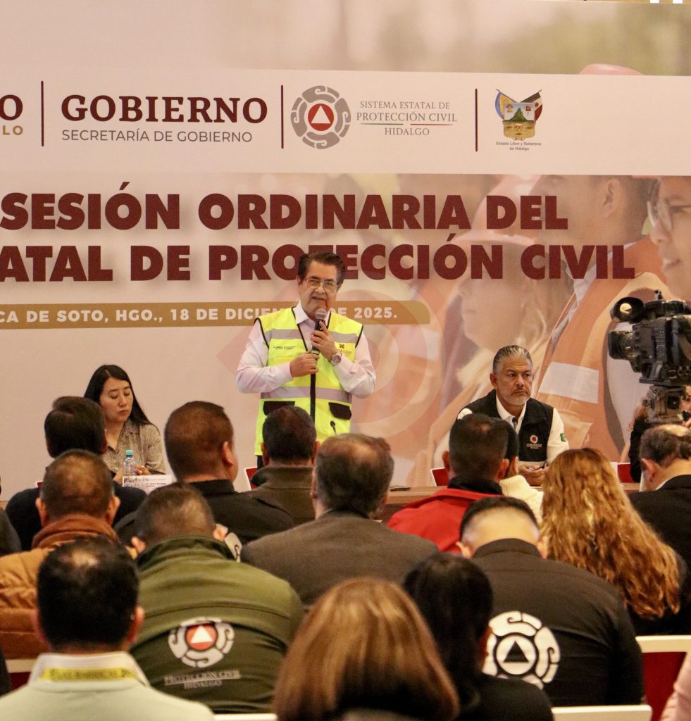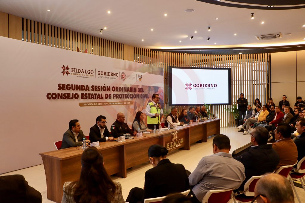 Pachuca de Soto, Hgo. – El secretario de Gobierno, Guillermo Olivares Reyna, presidió la Segunda Sesión Ordinaria del Consejo Estatal de Protección Civil, donde se presentó el informe 2025 del Sistema Estatal. Ahí, reconoció que la etapa de emergencia provocada por la vaguada monzónica ha sido superada y que ahora inicia una fase igualmente compleja: la reconstrucción.