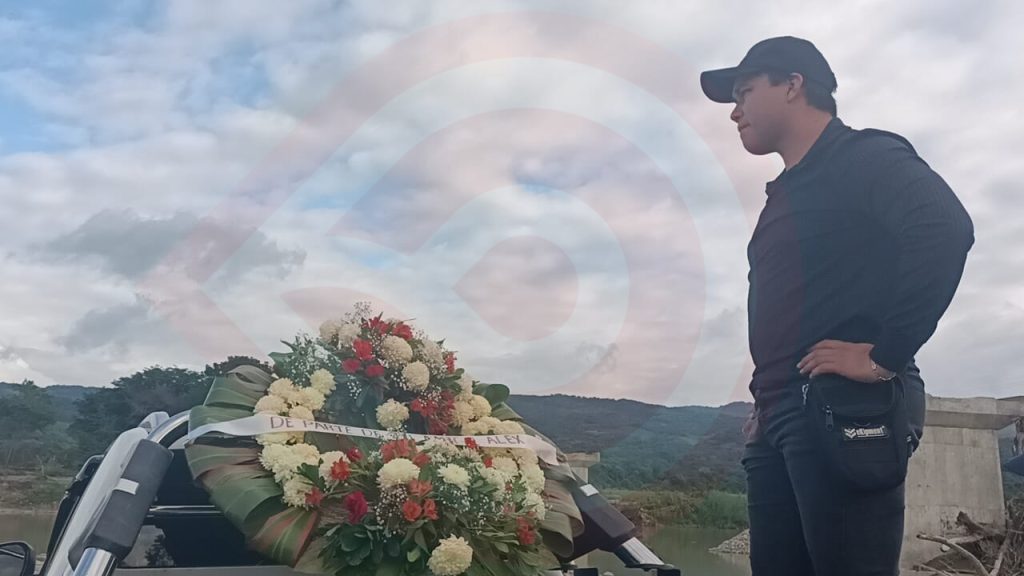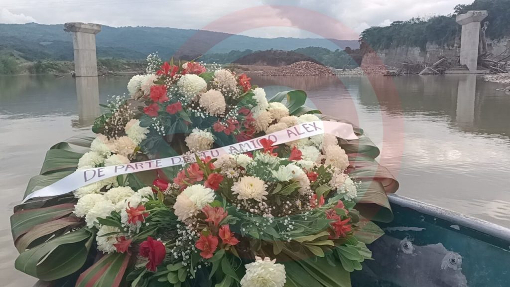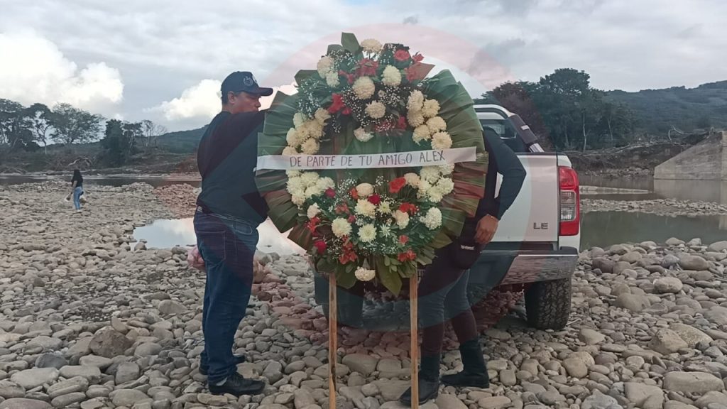Una corona de flores acompañó la panga que se trasladó desde Tamoyón I a Banderas, ahí los amigos Alexis Cruz Vite y su familia, artesanos pirotécnicos, acudieron a despedir a un gran amigo.