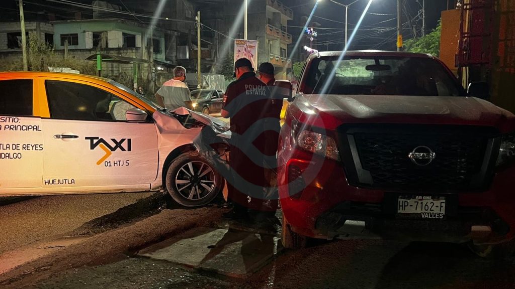 Huejutla, Hgo.- Cuantiosos daños materiales dejó como resultado un accidente automovilístico protagonizado por una taxi y una camioneta particular.