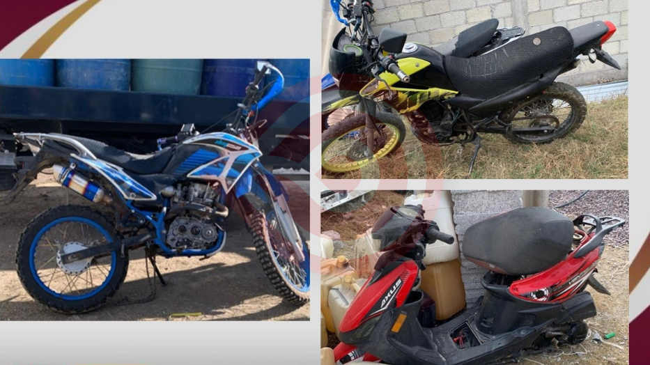 Como resultado, se logró el aseguramiento de 6 mil 400 litros de hidrocarburo, 252 contenedores de diversa capacidad, nueve motocicletas —tres de ellas con reporte de robo—, cuatro vehículos, una caja de carga, dos bombas presurizadoras, un generador de electricidad y 154 metros de manguera de alta presión, además de 450 dosis de presunta droga, reflejo del alcance y la contundencia de las acciones implementadas.