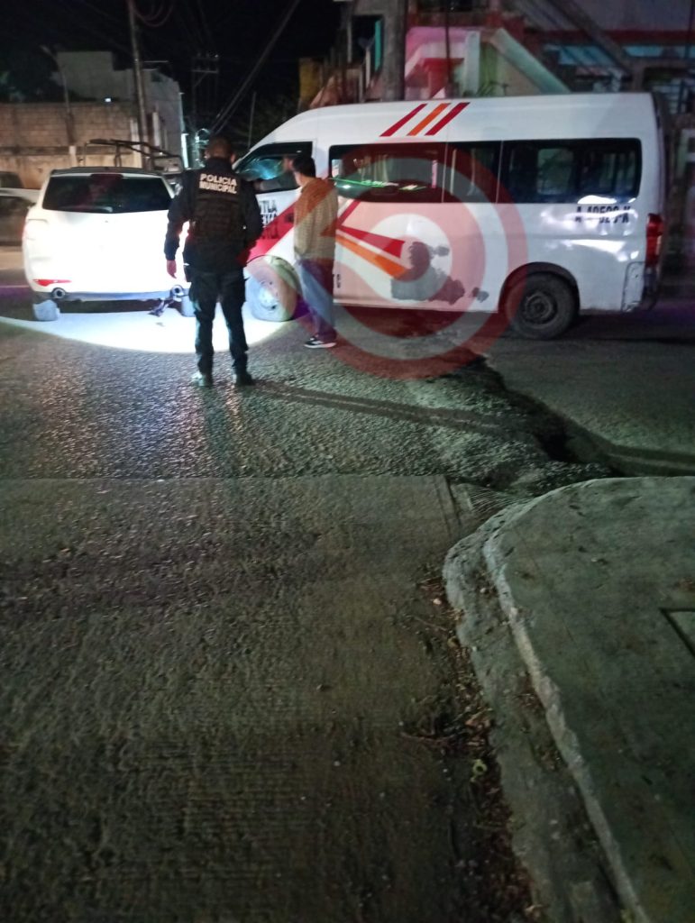 Fue sobre la calle Campeche esquina con la calle sur 3 de la colonia 5 de mayo, justo en frente de la gasolinera Moguel la urvan pasajera de la ruta Huejutla -Huautla intentó entrar a la calle Campeche y se impactó con la camioneta particular, dejando daños materiales, ambos vehículos al colisionar quedaron atorados lo que ocasiono cierre temporal del paso.