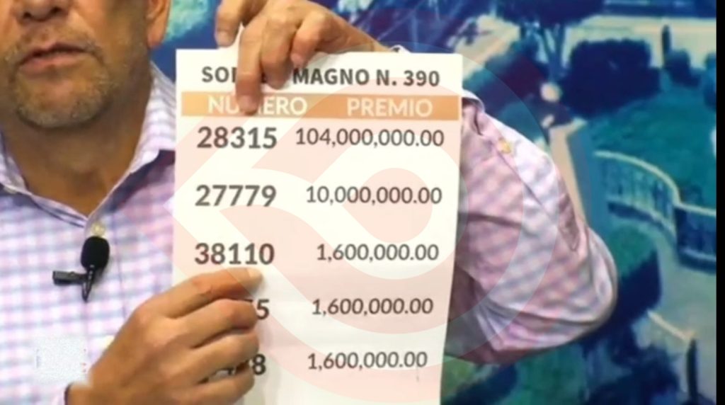 El presidente aclaró “Se hizo, se mandaron imprimir del boleto 0001 al número 7000. Se vendieron alrededor de 4820 boletos, algo así, no recuerdo ahorita, pero, hubo una serie completita, la de la del seis mil al siete mil, que no se tocó porque al final de cuentas no tuvimos la oportunidad de venderlos y, pues, bueno, el número, el primer premio, el ganador fue el veintiocho mil trescientos quince, ¿Qué pasó con este boleto? Cómo se toman los cuatro últimos números, ¿Sí? Que es el ocho mil trescientos quince, pero no se hizo esta serie. Después de ahí el segundo premio es el veintisiete mil setecientos setenta y nueve, tampoco se hizo”.