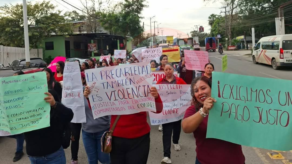 Actualmente educadores comunitarios del Consejo Nacional de Fomento Educativo (CONAFE), que reciben entre 2 mil 650 y 5 mil pesos mensuales, iniciaron el pasado lunes labores de “brazos caídos” y movilizaciones en distintos municipios del estado, para exigir un aumento al apoyo económico, seguridad social y condiciones mínimas de seguridad en las comunidades donde trabajan.