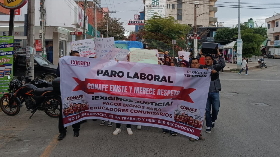 Huejutla, Hgo.- Formadores educativos del Consejo Nacional de Fomento Educativo (CONAFE) Región 34 perteneciente a Tehuetlán, durante la mañana de este jueves 15 de enero realizaron una marcha pacífica desde la plazuela Juárez hasta la zona centro de la ciudad, como medida de protesta para exigir respeto, justicia, así como pagos dignos para los educadores comunitarios.