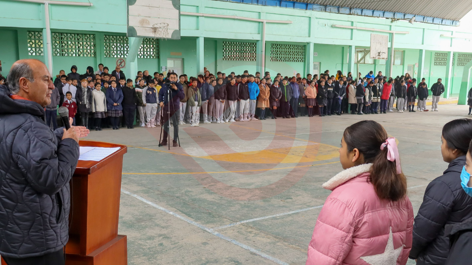Durante el Lunes Cívico, el titular de la SEPH explicó que el proyecto consistió en demoler un módulo antiguo de dos niveles para construir una moderna estructura de tres niveles, cuya conclusión está prevista para marzo próximo.