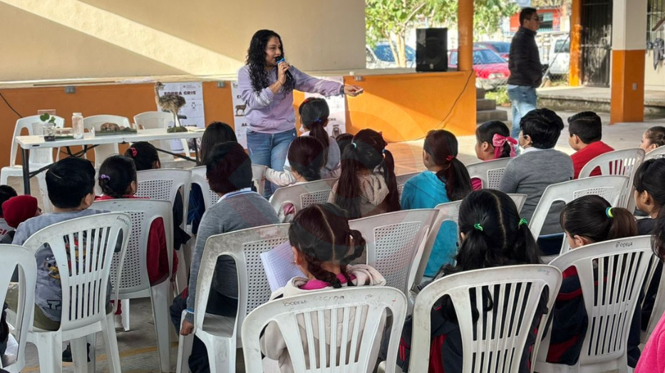 El responsable del CECAH, Nicolás Reyes Ramos, señala que las actividades de sensibilización y conciencia ambiental fueron dirigidas a más de medio centenar de alumnos de la Escuela Primaria “Fidel Rodríguez Morales” en Huejutla de Reyes.