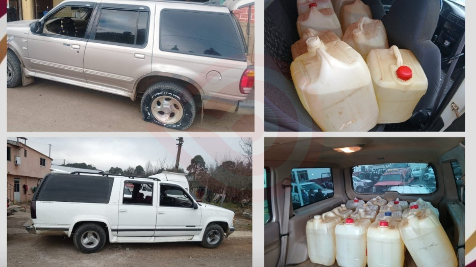 En total, se detuvo a seis personas del sexo masculino, cuatro camionetas, dos de las cuales transportaban aproximadamente 800 litros de hidrocarburo, así como un vehículo sedán con estrobos.