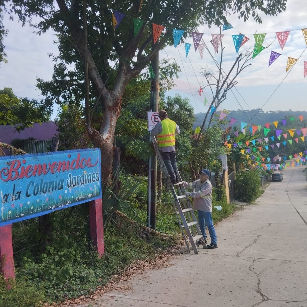 Por otro lado, expone que el pasado jueves personal a su cargo procedió a colocar las señaléticas correspondientes en la colonia Jardines en Huejutla.