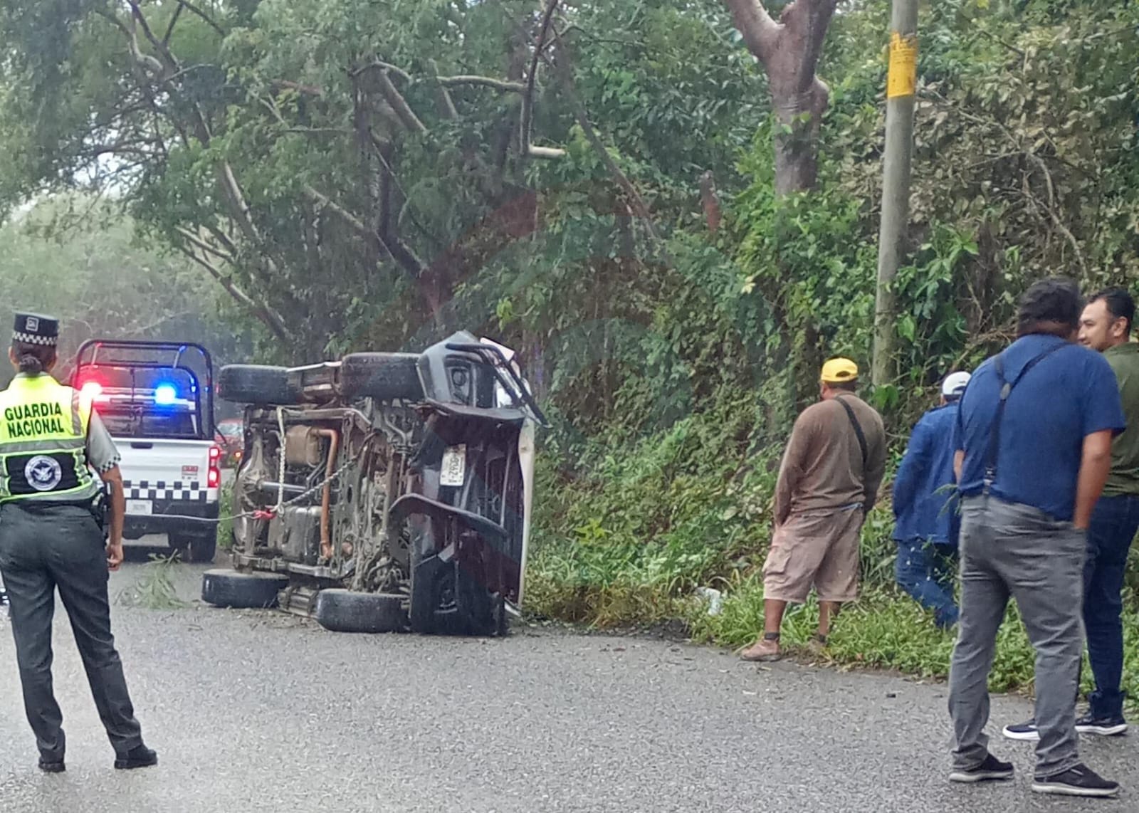 El percance ocurrió entre el crucero Tres Huastecas y la comunidad de Candelaria que una camioneta Nissan Blanca, su conductor había perdido el control por presunto exceso de velocidad y terminó con las llantas para arriba sobre la cuneta, accidente que dejó cuantiosos daños materiales y una persona con leves lesiones.