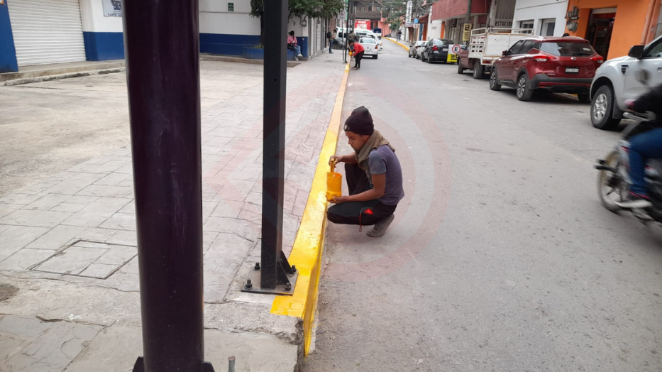 Huejutla, Hgo.- La mañana de este miércoles, personal no adscrito al municipio remozaba las guarniciones de calles de la Zona Centro, dándole mejor vista al primer cuadro de la ciudad.