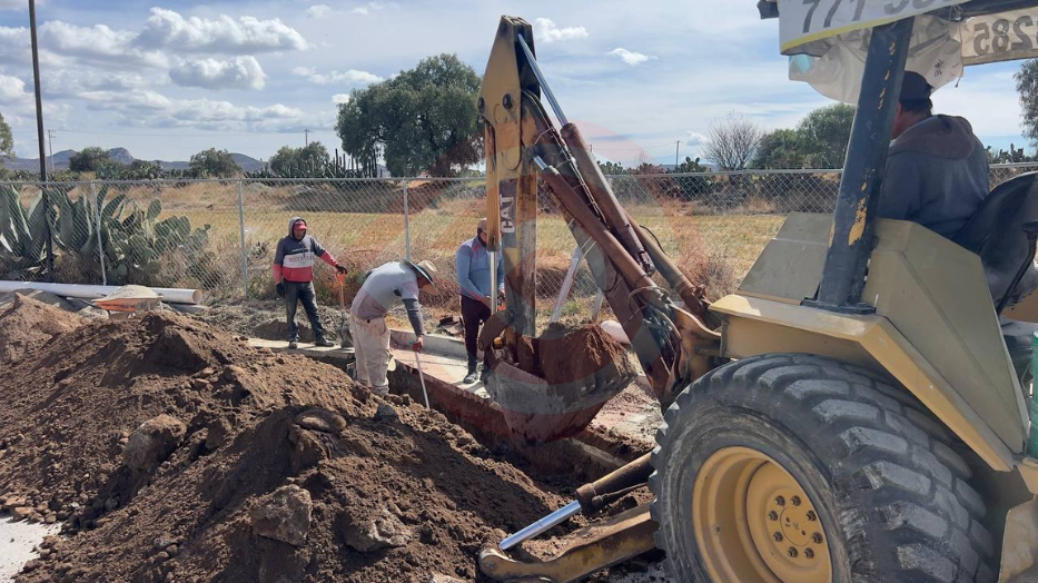 Personal especializado trabaja en la construcción de una línea de conducción de agua potable por bombeo que va del pozo 4 al pozo 6 en el fraccionamiento Paseos de Chavarría.