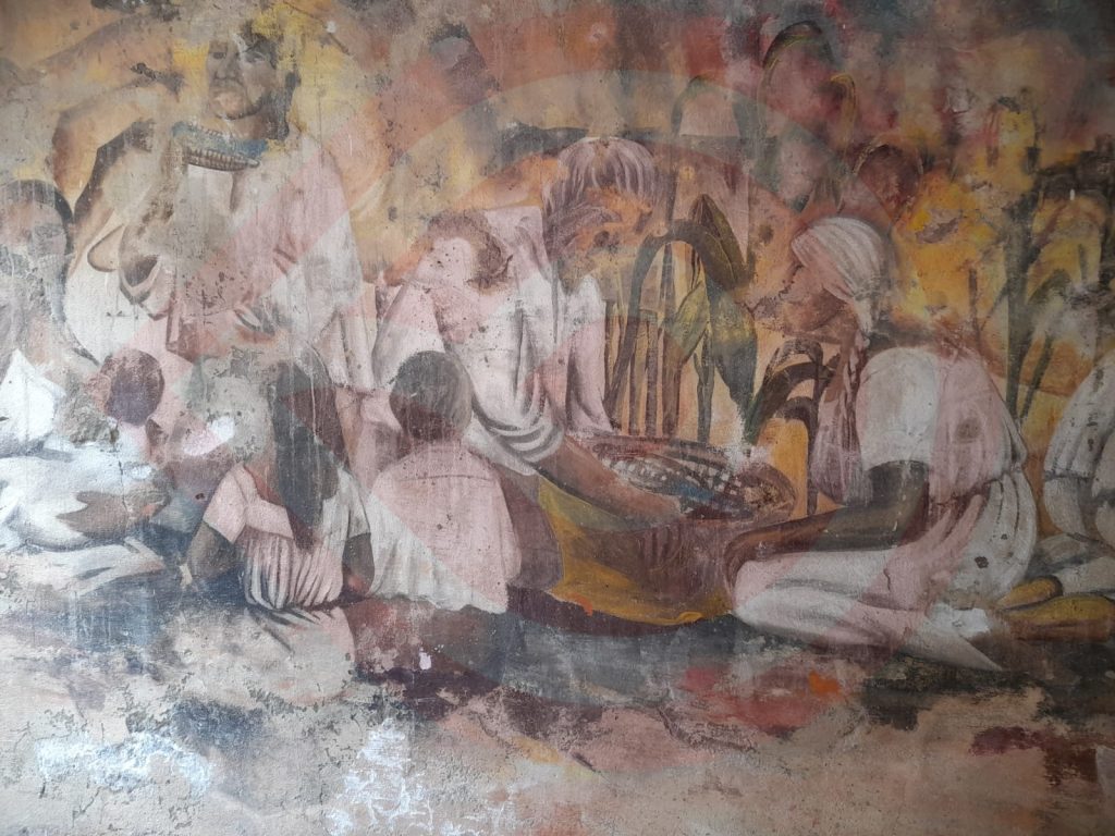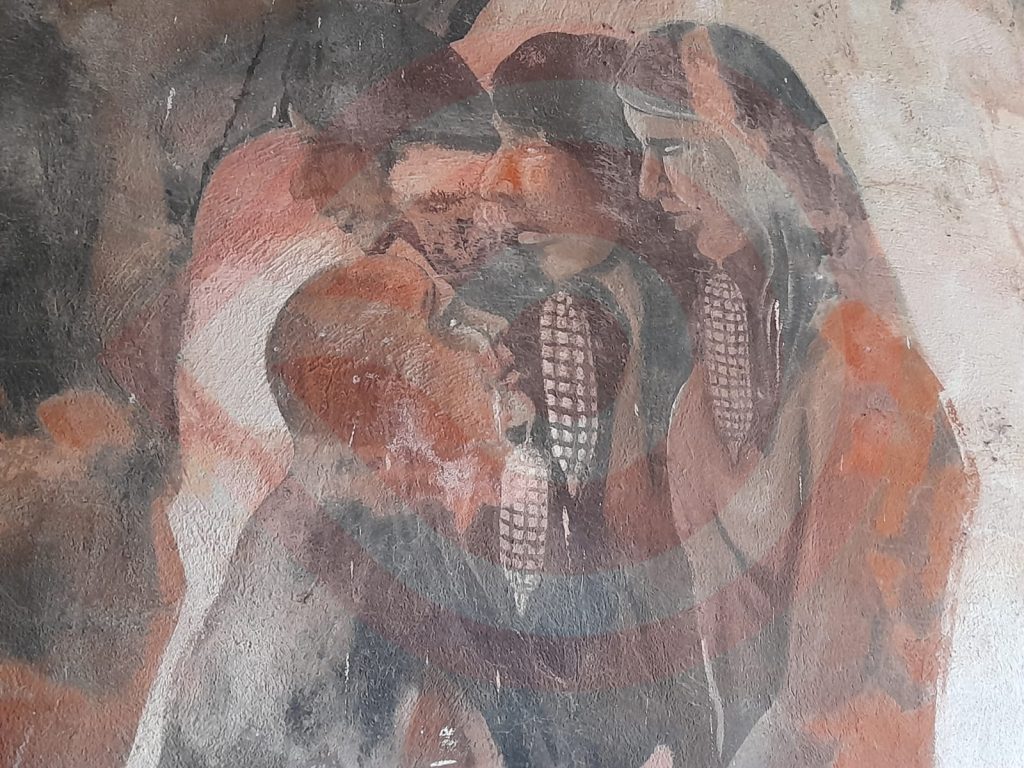 Especificó que, dicho mural fue plasmado en 1947 (hace 79 años), por el renombrado pintor Ildefonso Maya Hernández (1936-2011), magistral obra, acentuó, que narra la historia mitológica en la que la Madre Tierra entrega las semillas del maíz al hombre.