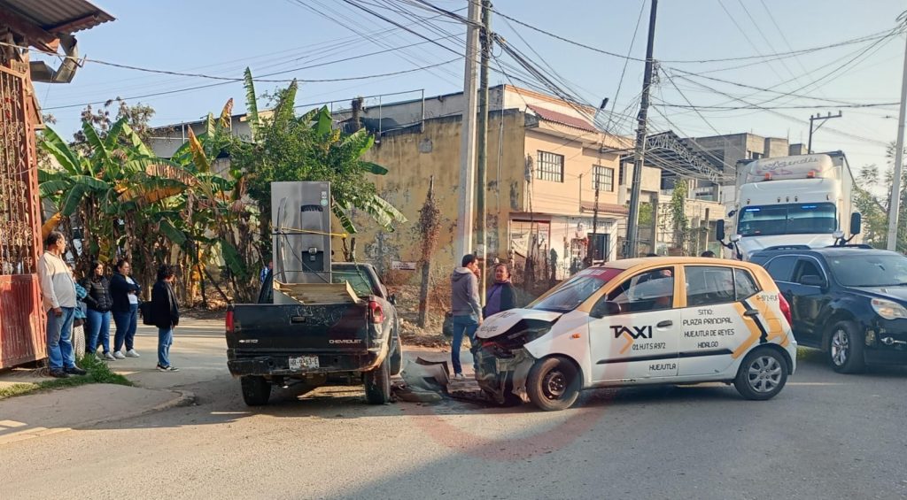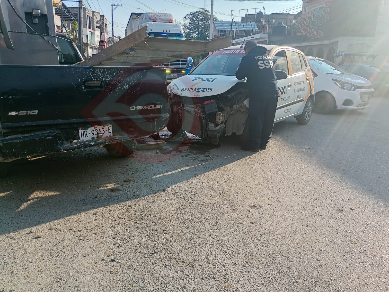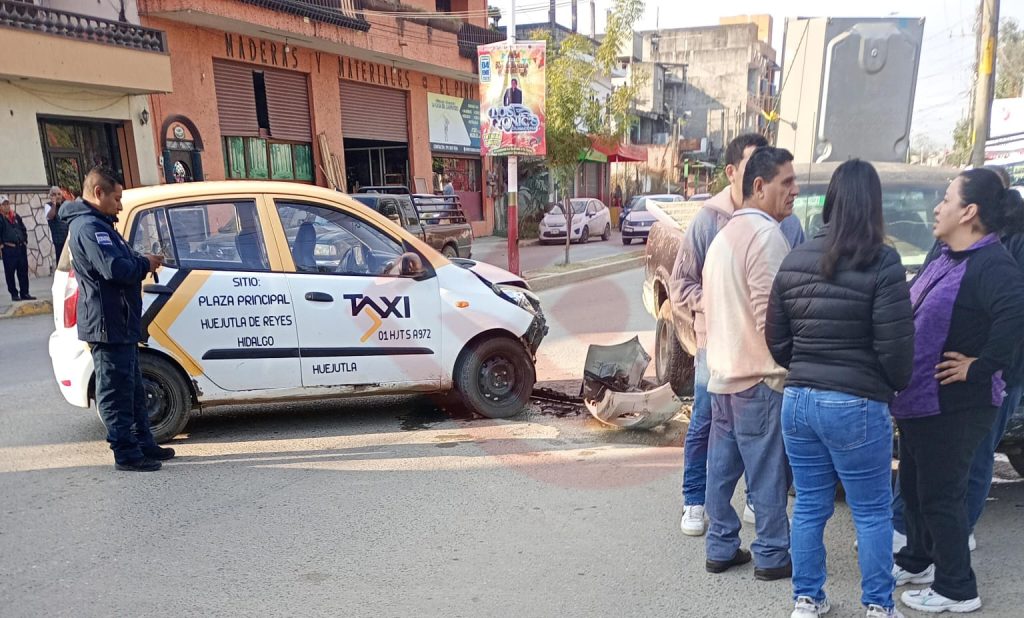 Huejutla, Hgo.- Presuntamente ante la falta de precaución del conductor de una camioneta chocó con un taxi, dejando una lesionada y cuantiosos daños materiales, a los hechos acudieron elementos de la secretaría de seguridad pública estatal para deslindar responsabilidades.