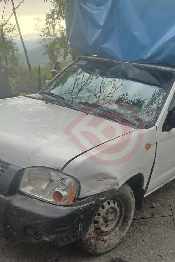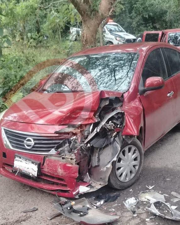 El percance ocurrió presuntamente ante el exceso de velocidad y falta de precaución de una camioneta del transporte rural mixto de la marca Nissan tipo Estaquitas que invadió carril y se impactó con un automóvil Nissan Sentra color roja, en dónde resultó lesionada la maestra A.G.M.
