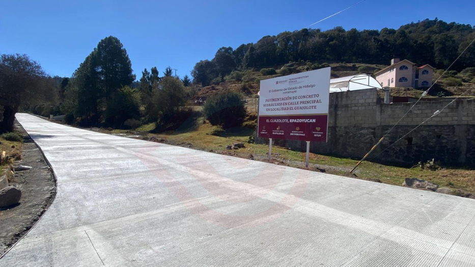Derivado de lo anterior, y con una inversión superior a los 9 millones de pesos, se lleva a cabo la pavimentación de concreto hidráulico en la calle principal de la localidad El Guajolote, municipio de Epazoyucan.