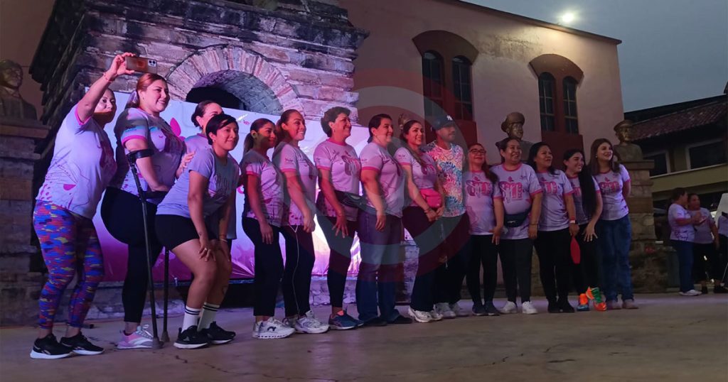 El evento fue encabezado por la presidenta del Sistema Municipal para el Desarrollo Integral de la Familia (SMDIF), Kristel Rodríguez Flores, quien acompañó a las asistentes durante esta jornada de baile y energía.