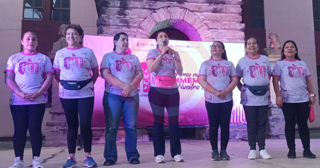 Durante la jornada, la Plaza del Reloj se llenó de entusiasmo, color y movimiento, en un ambiente de unión entre las asistentes, quienes disfrutaron de esta actividad deportiva organizada en el marco del Día Internacional de la Mujer.