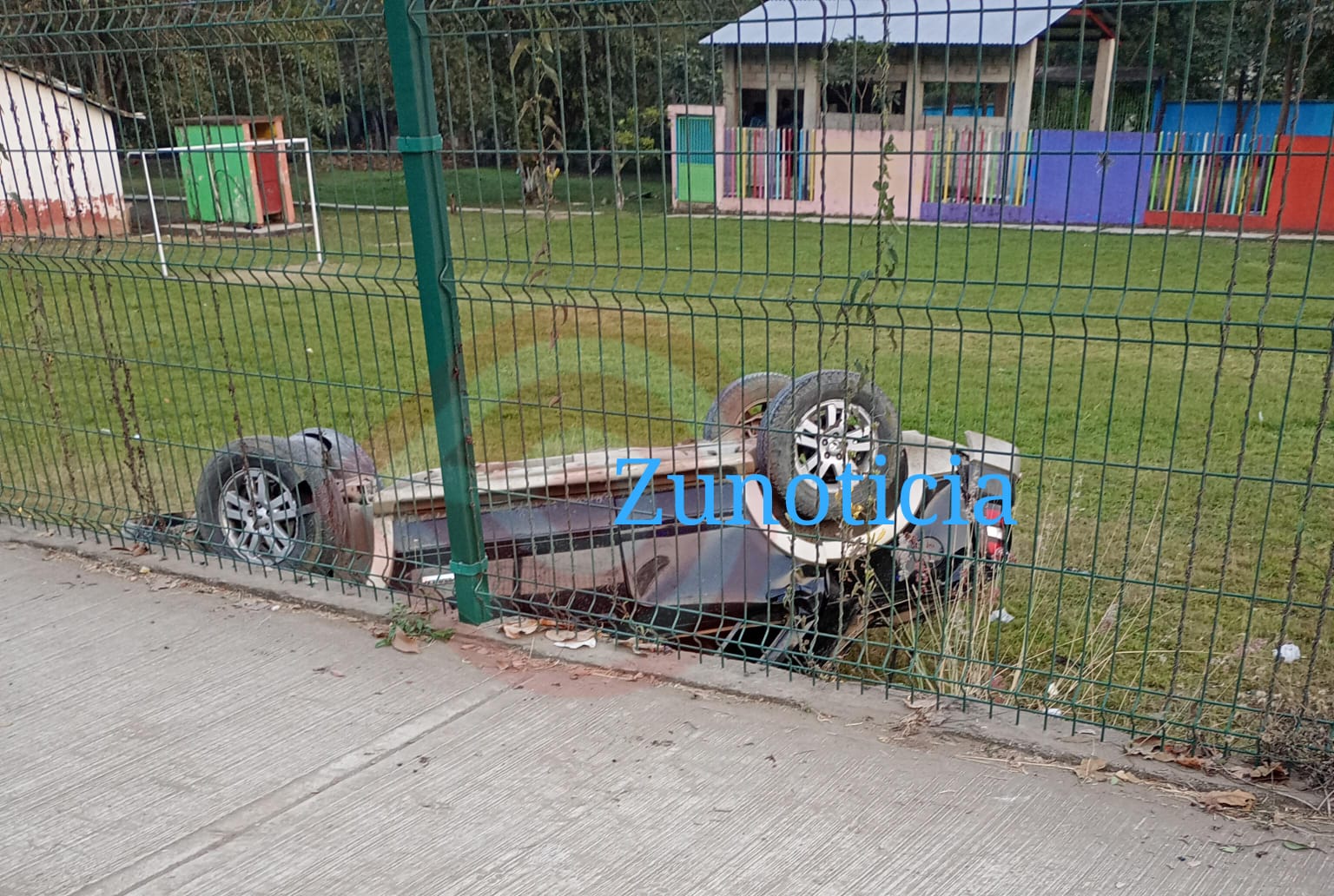Fue la tarde de este viernes sobre la vía federal México – Tampico a la altura de la primaria Niños Héroes de esa localidad, que la camioneta Ford, cuyo conductor perdió el control y terminó dando varias vueltas hasta terminar en el campo de fútbol de esa escuela.