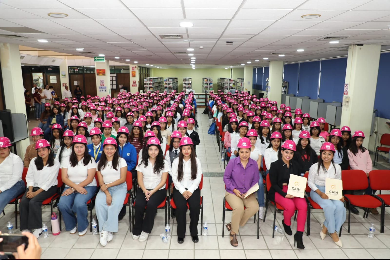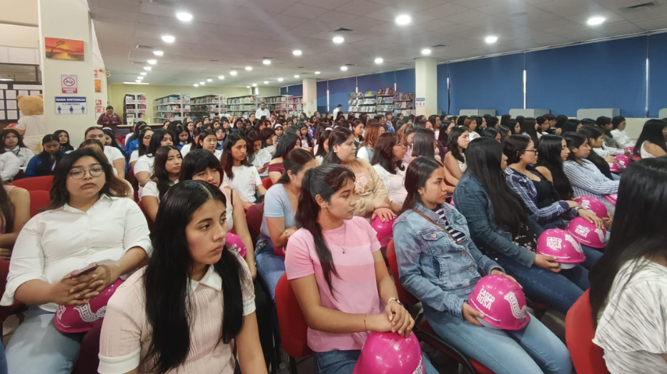 Como parte de esta jornada, se realizó la entrega simbólica de cascos rosas a alumnas de la UTHH y a asistentes de otros planteles educativos, como un mensaje de reconocimiento, inclusión y promoción de la participación de las mujeres en áreas tradicionalmente vinculadas a la ingeniería y la construcción.