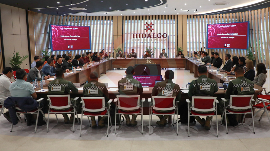 Pachuca de Soto, Hgo.- Para dar seguimiento a los avances de la construcción de los trenes AIFA-Pachuca y México-Querétaro, el gobernador Julio Menchaca Salazar encabezó una reunión interinstitucional con integrantes del Gobierno de México, del Agrupamiento de Ingenieros Felipe Ángeles, funcionarios del Estado de México, así como alcaldes y alcaldesas de ambas entidades federativas.