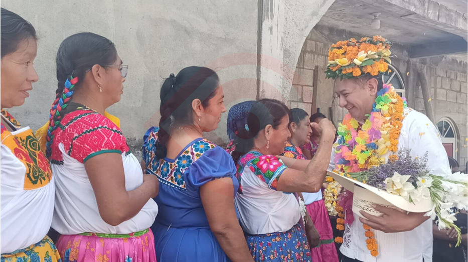Del mismo modo, se efectuó el ritual del agua con menores de edad y el bautizo Huasteco, donde el Comisionado Estatal, recibió el tradicional “remojo”.