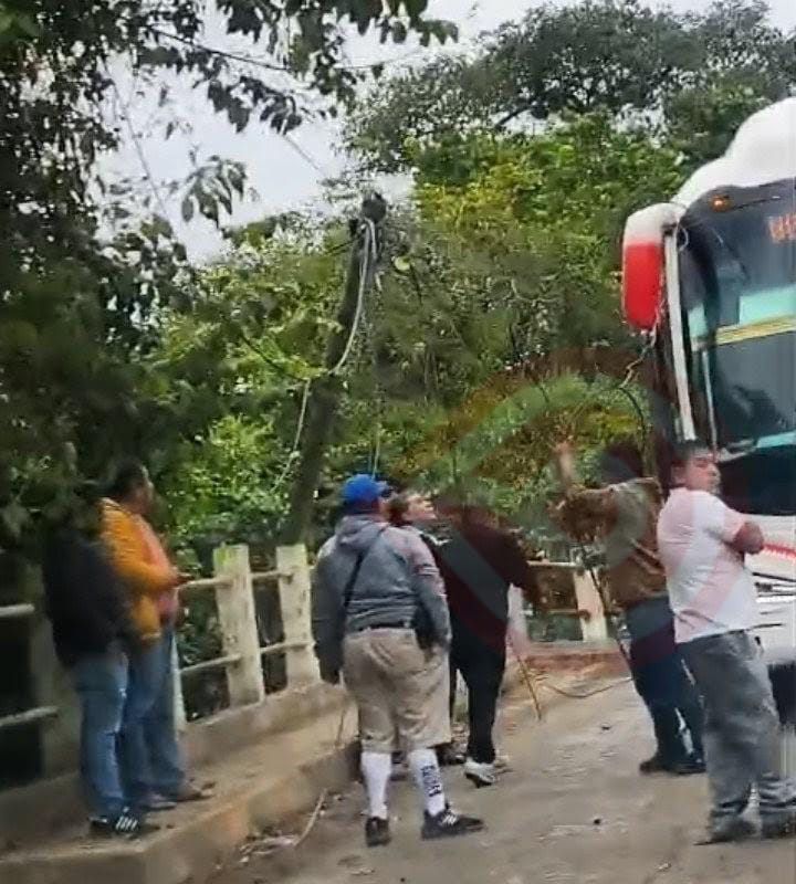Este se derrumbó derivado del mal estado y falta de mantenimiento, por lo que a un autobús que circulaba por el lugar casi le cae encima y le alcanzaron a llegar solo los cables, ya que el poste podrido de madera se logró detener con el barandal del puente.