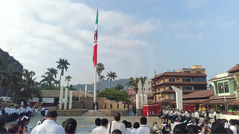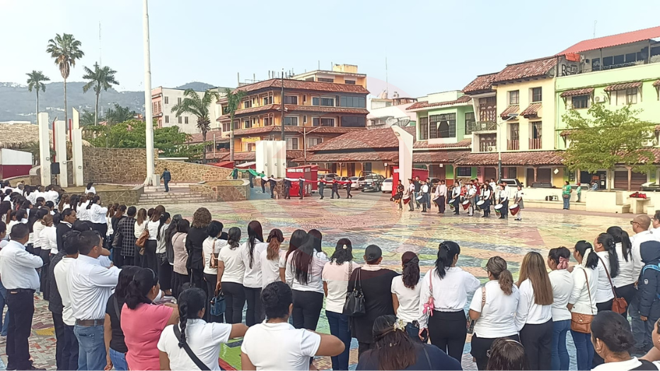 Durante la ceremonia, la banda de guerra integrada por estudiantes del CECyTEH y del ITH participó en los honores al lábaro patrio, mientras que el izamiento de la bandera nacional estuvo a cargo de elementos de Seguridad Pública Municipal.
