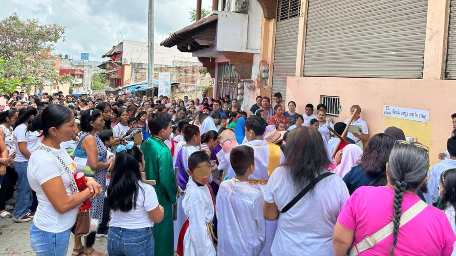 Los niños recorrieron distintos espacios anexos de la catedral, donde representaron las 14 estaciones del Viacrucis, desde el momento en que Jesús es condenado a muerte hasta su colocación en el sepulcro; esta actividad permitió a los menores comprender de manera más cercana el significado de esta tradición religiosa.