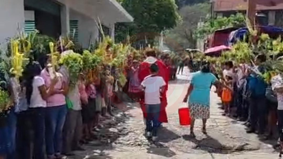 La procesión comenzó con la bendición de las palmas sobre la calle 16 de Enero en el barrio Pahuatitla, para posteriormente ingresar en conjunto a la iglesia por las puertas principales.