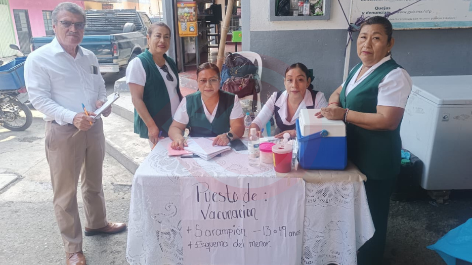 Huejutla, Hgo.-Durante la mañana de este 1 de abril, en el tianguis de Semana Santa, como parte de la campaña del Instituto Mexicano del Seguro Social (IMSS) se ubicó un puesto de vacunación contra el Sarampión sobre la colonia Santa Irene.