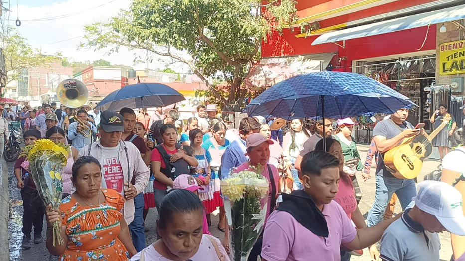 Durante el trayecto, los participantes estuvieron acompañados por un grupo de danzantes, una tradicional banda de viento y del grupo de las Inditas, quienes dieron colorido y solemnidad a la procesión, asimismo, elementos de Vialidad brindaron apoyo para resguardar el paso de los feligreses.