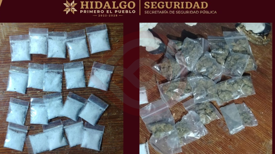 Pachuca de Soto, Hgo.- Derivado de trabajos de inteligencia y coordinación interinstitucional, elementos de la Secretaría de Seguridad Pública de Hidalgo (SSPH), en conjunto con la Procuraduría General de Justicia del Estado de Hidalgo (PGJEH) y la Secretaría de la Defensa Nacional (Sedena), lograron la detención de dos personas presuntamente vinculadas con la distribución de narcóticos, a quienes se les aseguraron 357 dosis de presunta droga, entre marihuana y cristal, en acciones desarrolladas en la colonia Nueva Tizayuca.