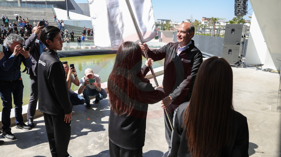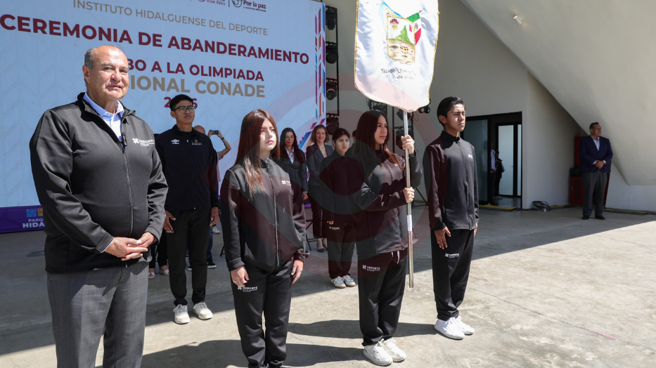 Pachuca de Soto, Hgo.-El secretario de Educación Pública de Hidalgo, Natividad Castrejón Valdez, encabezó la ceremonia de abanderamiento de la delegación que representará a la entidad en la Olimpiada Nacional CONADE 2026.