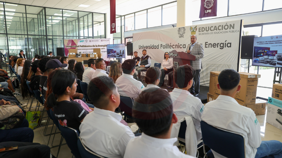 Pachuca de Soto, Hgo.- El secretario de Educación Pública de Hidalgo, Natividad Castrejón Valdez, encabezó la entrega de equipamiento especializado y mobiliario en la Universidad Politécnica de la Energía (UPE), con una inversión de 2 millones de pesos, en beneficio de 630 estudiantes.
