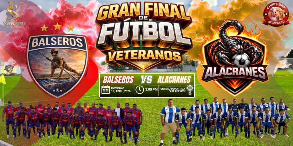 Posteriormente, a las 15:00 horas el balón rodará para dar pie a la gran final de campeonato, la cual, será protagonizada por los poderosos Balseros de Chano Nochebuena y su constelación de estrellas de la región que, ahora tendrán como sinodal a los criollitos pero picosos Alacranes de Tecolotitla.