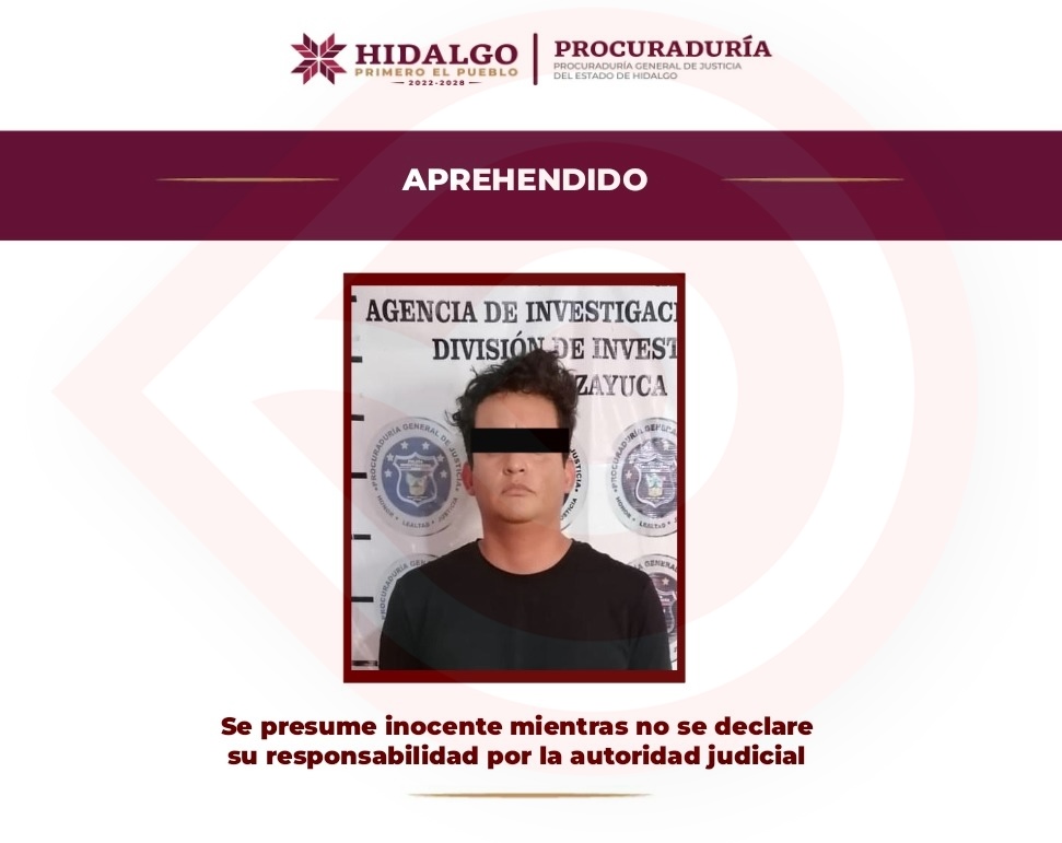 El probable fue aprehendido en la colonia El Potrero 2, en el municipio de Tizayuca, luego de que está procuraduría recibiera la solicitud de colaboración por parte de la Fiscalía General de Justicia del Estado de Veracruz, para dar cumplimiento al mandamiento judicial.