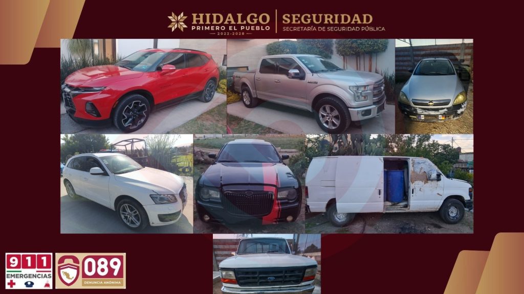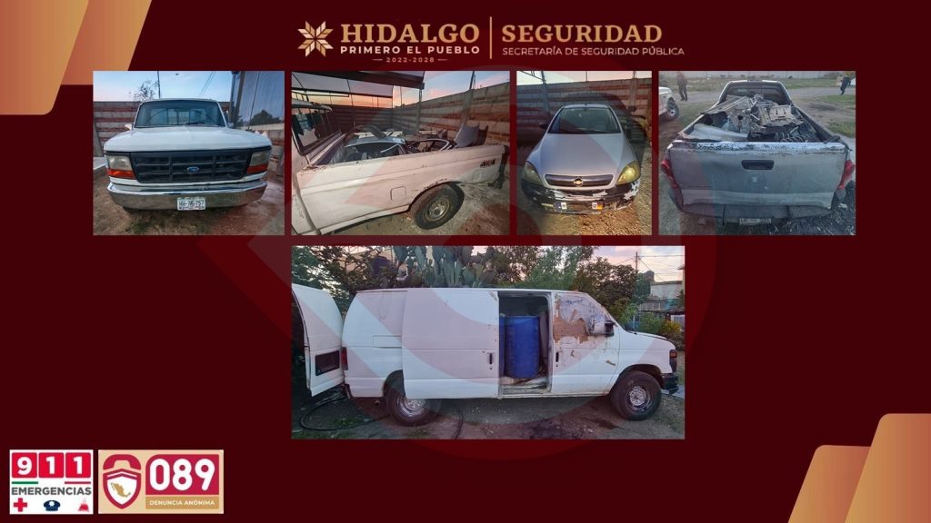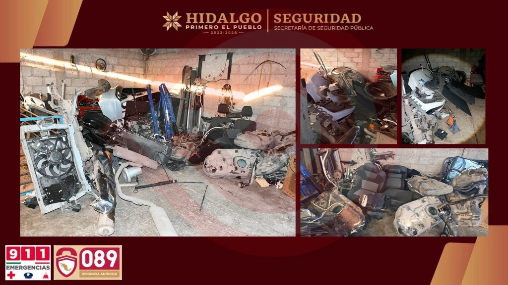 Pachuca de Soto, Hgo.- La Secretaría de Seguridad Pública de Hidalgo (SSPH) encabezó un operativo en la colonia Francisco Villa, municipio de Cuautepec de Hinojosa, donde se logró el aseguramiento de dos hombres, 120 piezas de autopartes robadas, 758 dosis de presunta droga y siete vehículos, varios de ellos con irregularidades y reporte de robo, tras la ubicación de cuatro inmuebles presuntamente vinculados con actividades delictivas.