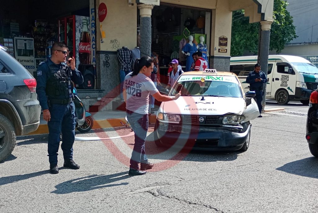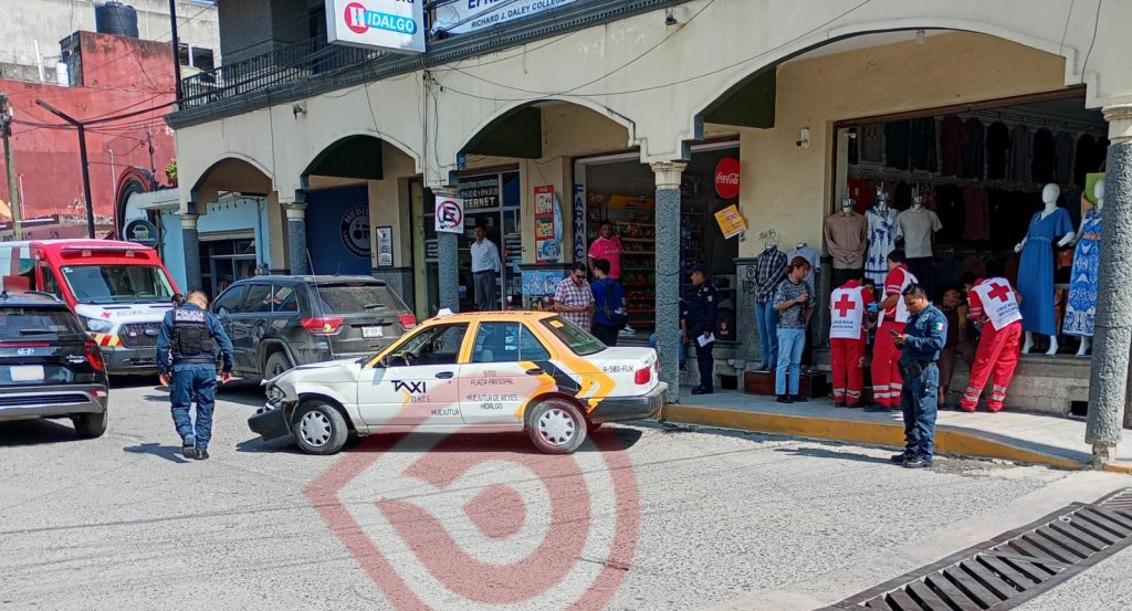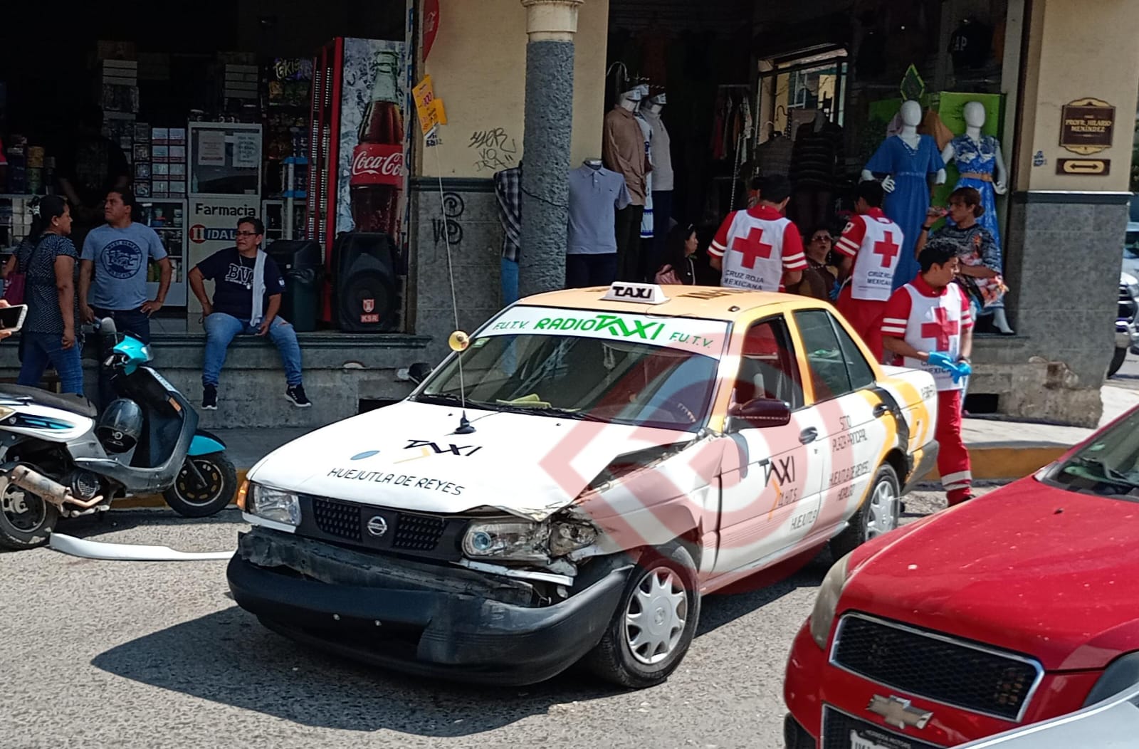 El percance ocurrió la tarde de este sábado sobre la calle Velázquez Ibarra esquina con la Hilario Menindez, donde una camioneta entró, impactó un taxi Nissan Tsuru y se dio a la fuga; paramédicos de la Cruz Roja acudieron al lugar para auxiliar a dos mujeres quienes resultaron con lesiones menores.