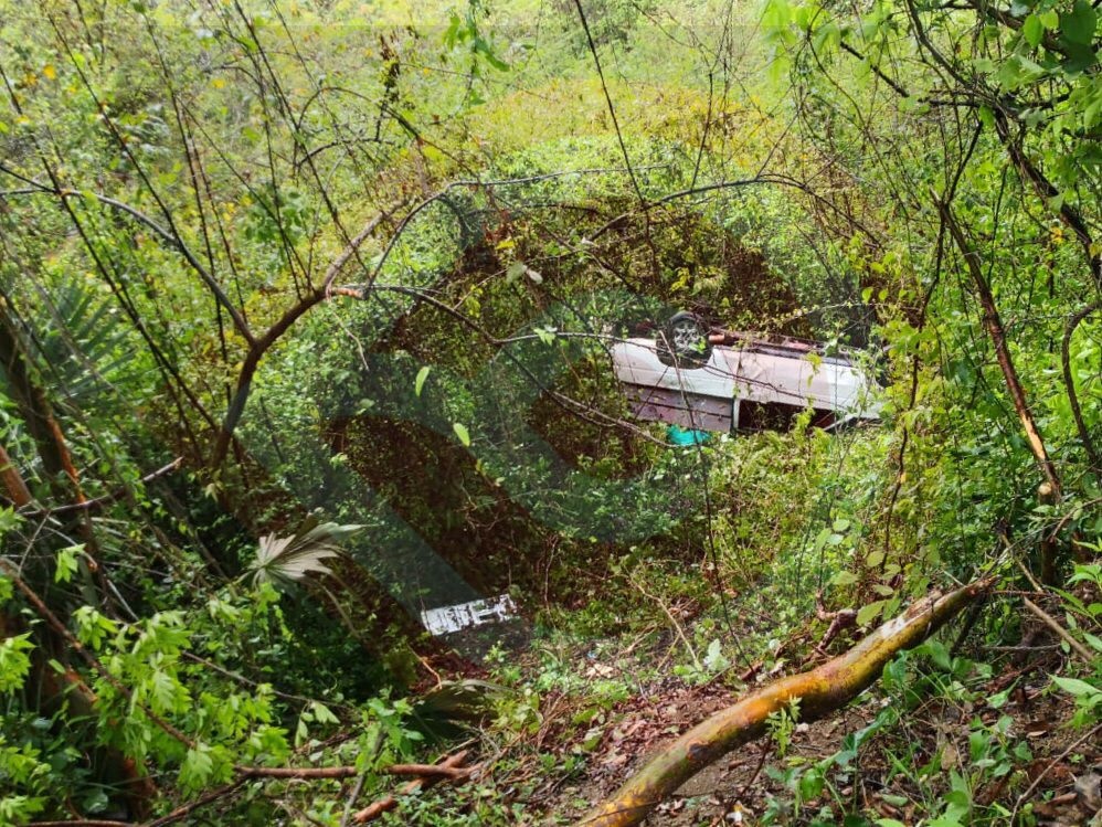 Camioneta Nissan se salió de la carretera y cayó a un barranco.