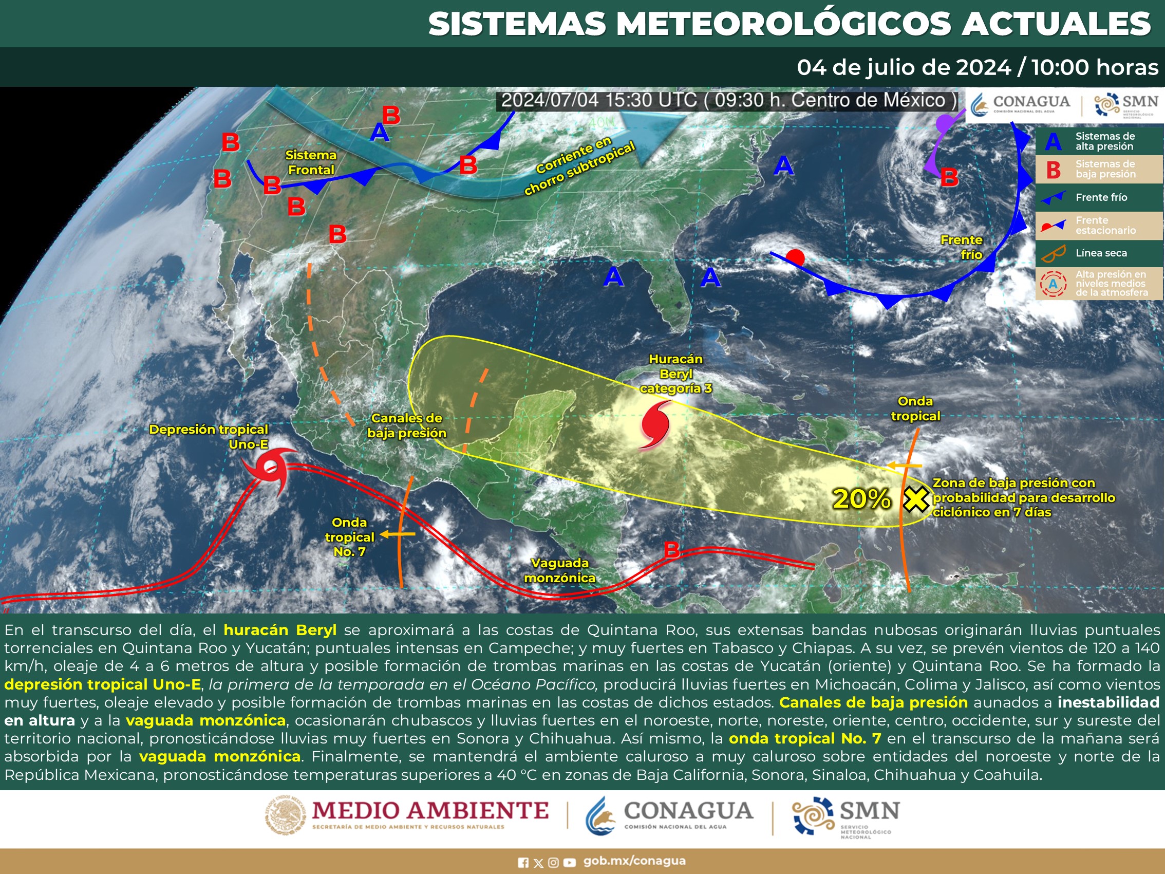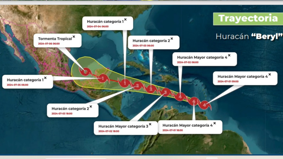 Ante la presencia del huracán Beryl, categoría 4 en la escala Saffir-Simpson, que se desarrolla en el Océano Atlántico con trayectoria hacia las costas de la Península de Yucatán, la Secretaría de Marina (SEMAR), la Comisión Nacional del Agua (Conagua) y la Coordinación Nacional de Protección Civil (CNPC) hicieron un llamado a las autoridades de… Seguir leyendo Autoridades de los tres órdenes de gobierno se coordinan ante la presencia del huracán Beryl, en el Atlántico