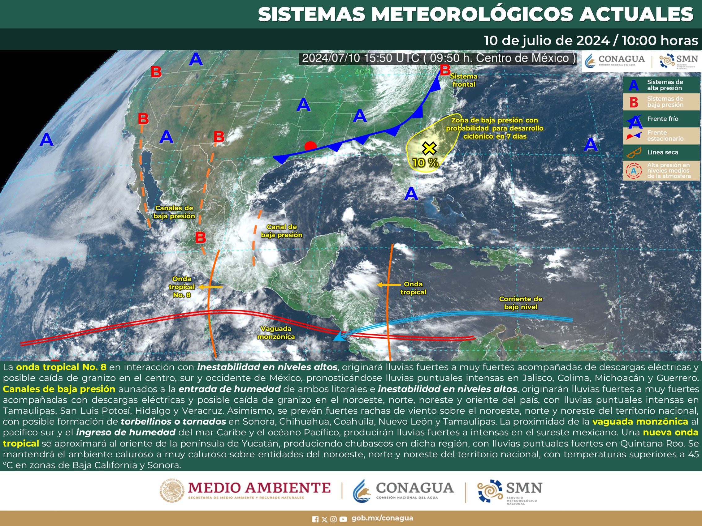 Ante los efectos de lluvia y viento generados por diversos fenómenos meteorológicos en la Península de Yucatán, el noreste, el oriente y el sureste del país, principalmente, el Gobierno de México, mediante la Secretaría de Marina (SEMAR), la Comisión Nacional del Agua (Conagua) y la Coordinación Nacional de Protección Civil (CNPC), hace un llamado a… Seguir leyendo Gobierno de México llama a implementar acciones de protección debido al pronóstico de nuevo temporal de lluvias