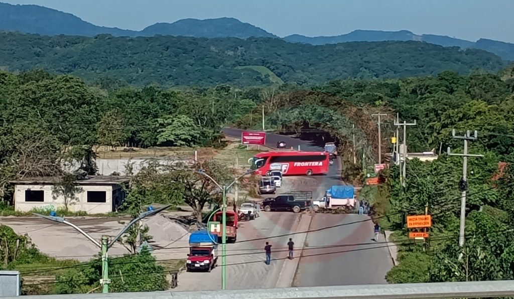 Al momento, solo se encuentra una patrulla de la Secretaría de Seguridad Pública Estatal, mientras que elementos de la Guardia Nacional carreteras están “brillando por su ausencia” y no están abanderando el bloqueo.