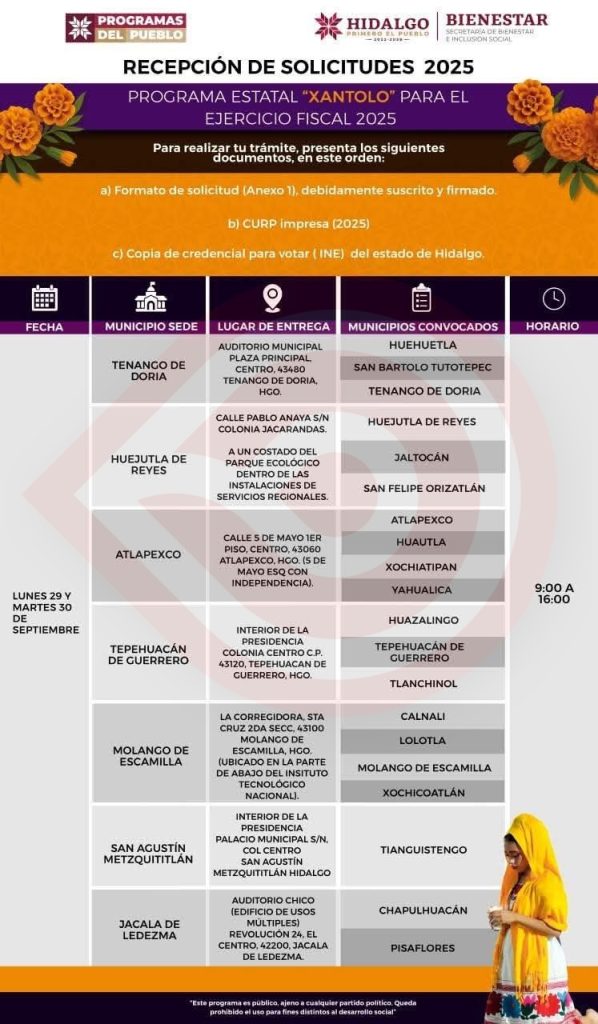 Para quienes viven en San Felipe Orizatlán, Jaltocán y Huejutla, la documentación debe entregarse en las instalaciones de Servicios Regionales en Huejutla.