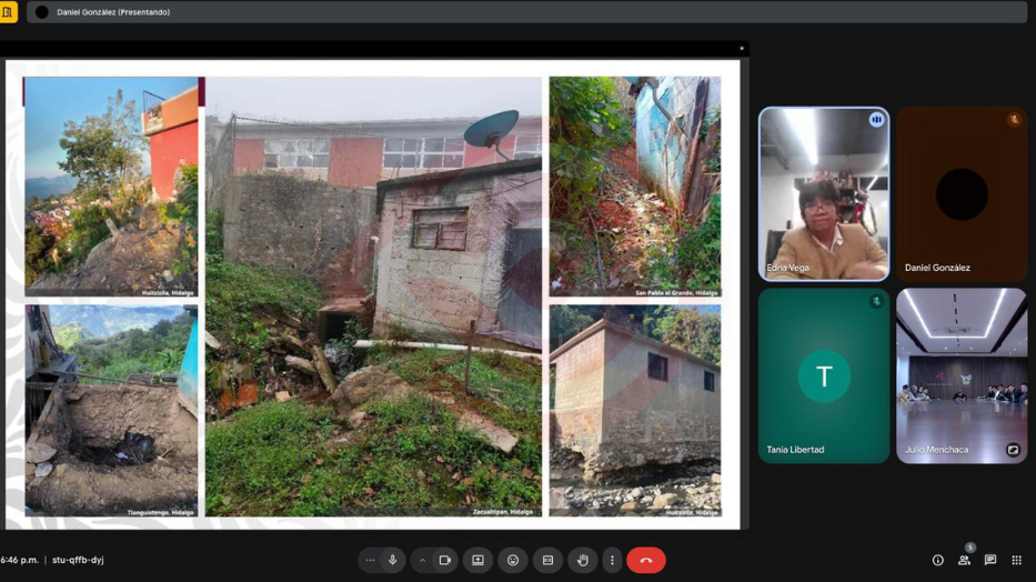 Durante el encuentro, se informó sobre las visitas técnicas realizadas en territorio por parte del personal de la Sedatu y del gobierno de Hidalgo; también se revisó el diagnóstico de las zonas dañadas y se evaluaron las alternativas de suelo seguras para reubicar a la población hidalguense que lo requiera.