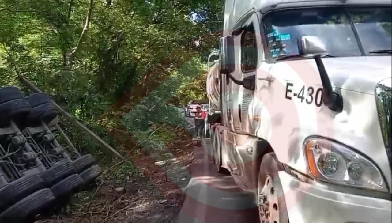Bloquean la México-Tampico por maniobras para rescatar pipa de gasolina y diésel
